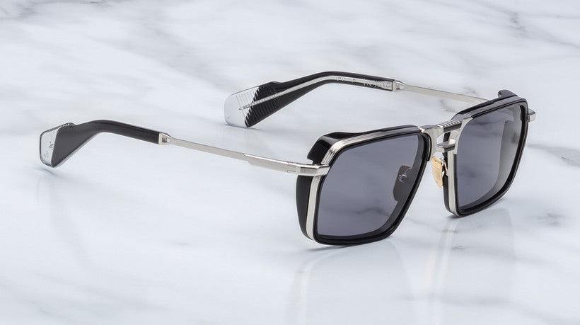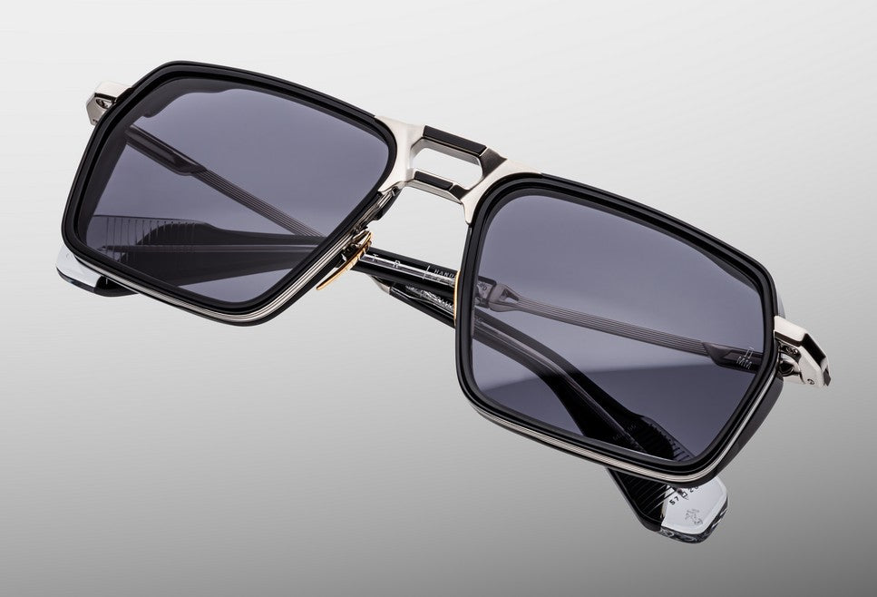 - SILVER HAIRLINE ENGRAVED TITANIUM TEMPLES WITH ACETATE TIPS